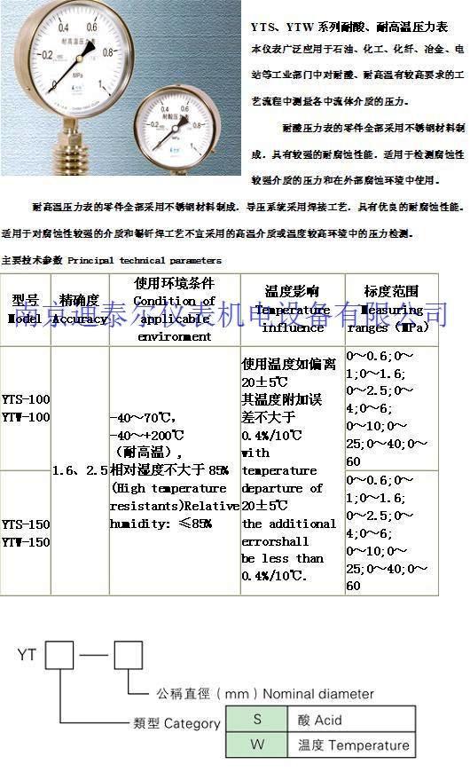耐酸耐高温压力表