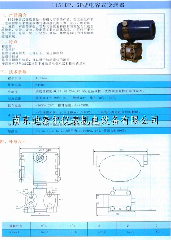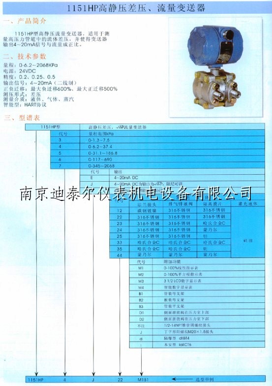 智能差压变送器DTR3051,2线制4~20mADC输出,数字通讯差压变送器
