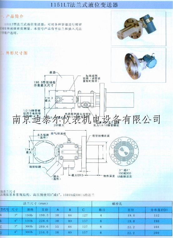 1151LT法兰式液位变送器,平法兰和插入式法兰可选 高精度变送器