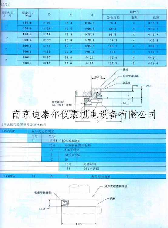 3351 1151电容式双插法兰变送器,带2m毛细管