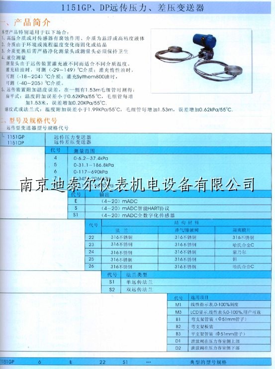 3351 1151电容式单法兰变送器,带2m毛细管 不锈钢变送器