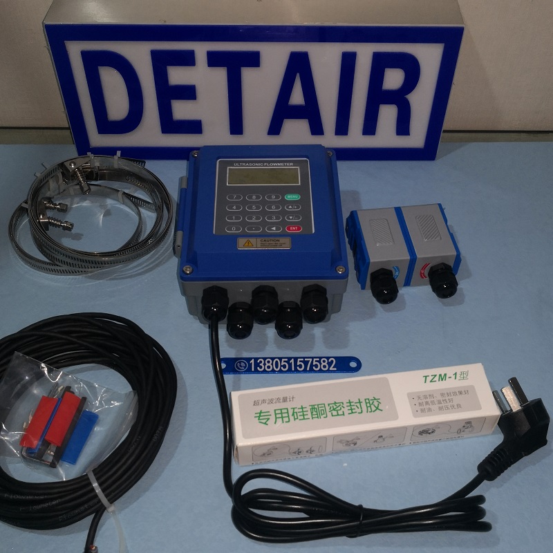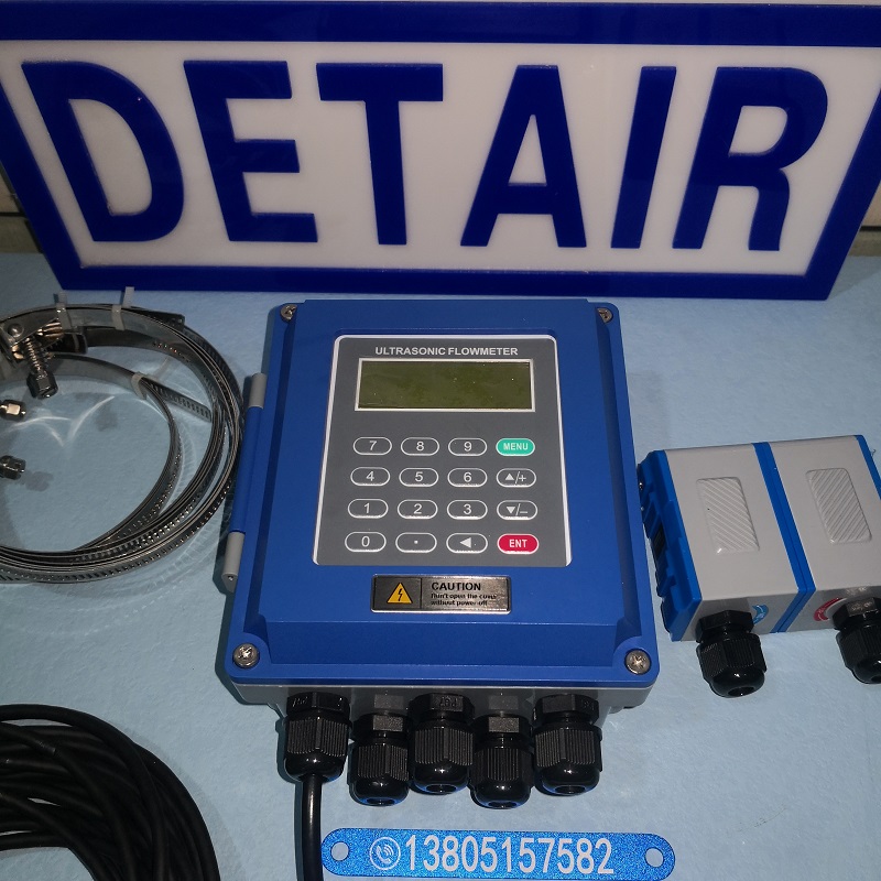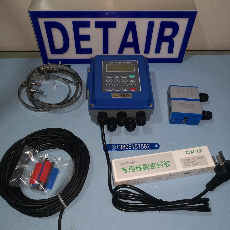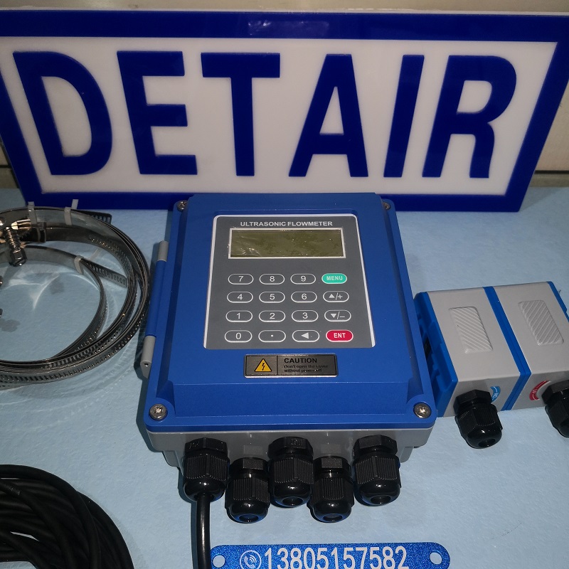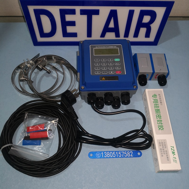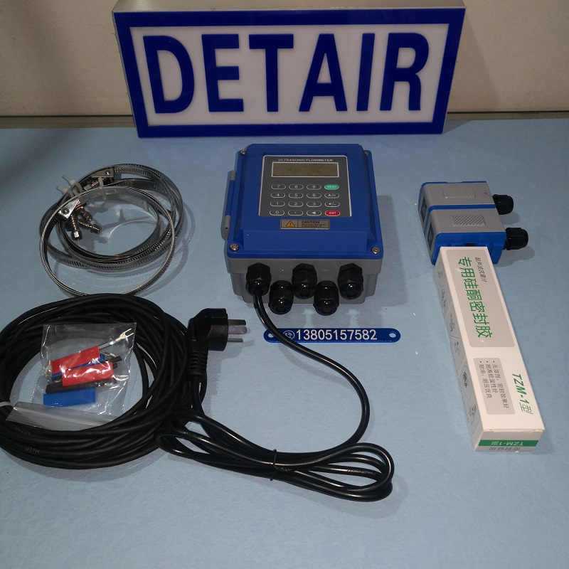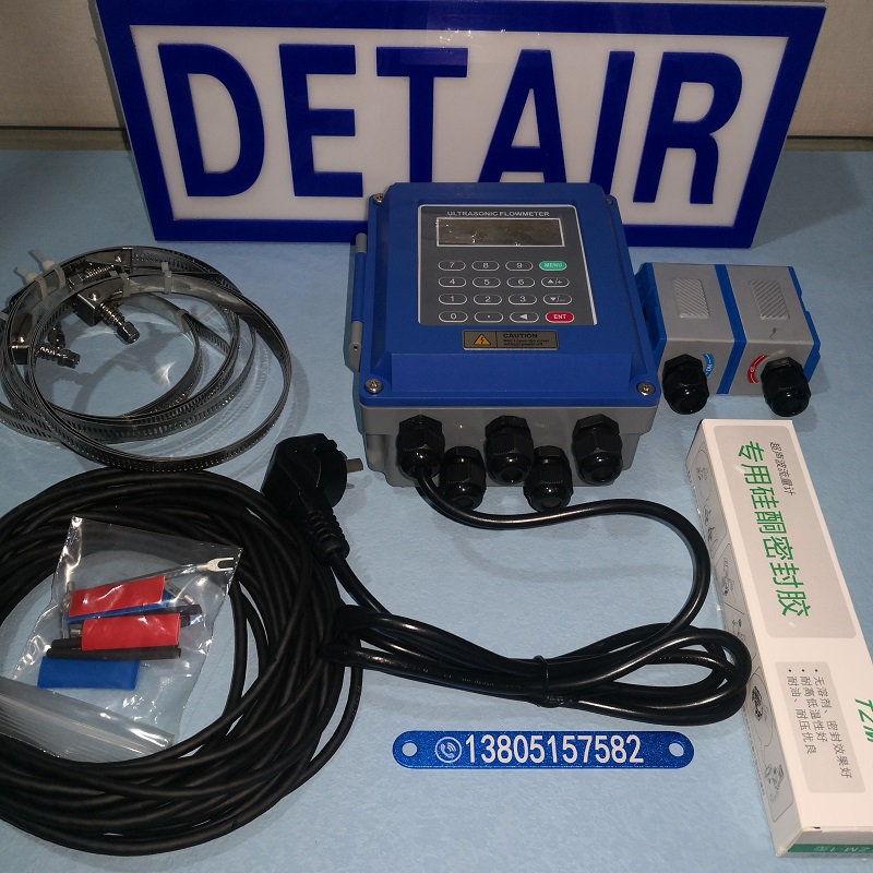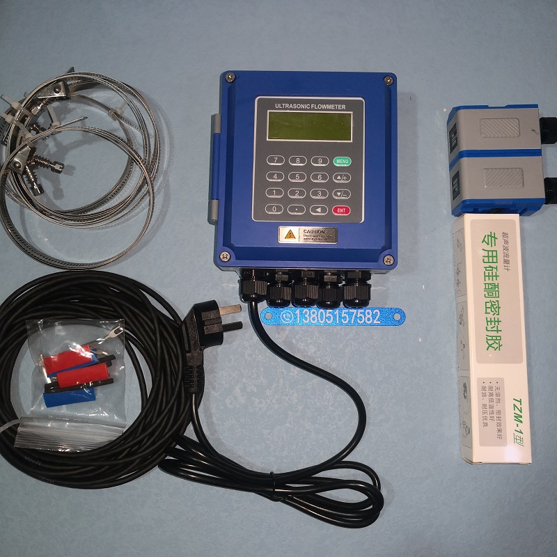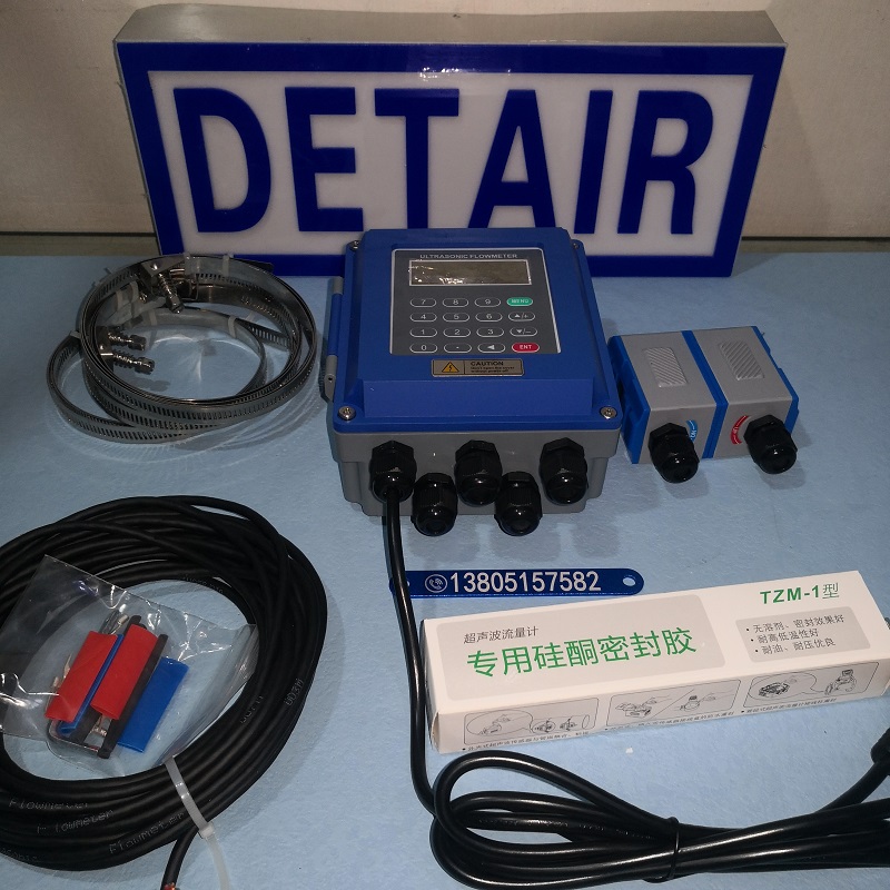 将带磁性的超声波流量计传感器吸附在管道外壁 , 即可完成流量测量;