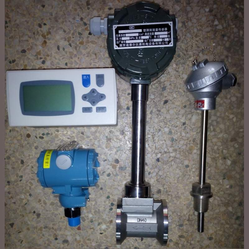 迪泰尔温压补偿一体化涡街流量计可以替换在现场无法正常工作的分流旋翼式蒸汽流量计,现场液晶表头显示瞬时流量、累积流量,切换显示实时温度、实时压力、有温度、压力补偿功能。 迪泰尔分体式涡街流量计测量蒸汽时,主要由四部分组成:涡街流量传感器,压力变送器,温度传感器,液晶记录仪。蒸汽流量计 可选温度压力补偿型涡街流量计测量过热蒸汽或者饱和蒸汽精度高;测量饱和蒸汽可选温度补偿型涡街流量计 或者压力补偿型涡街流量计。