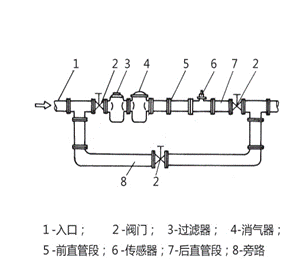 需连续运行不能停流的场所,应装旁通管和可靠的截止阀(见图 9 ),测量时要确保旁通管无泄漏。