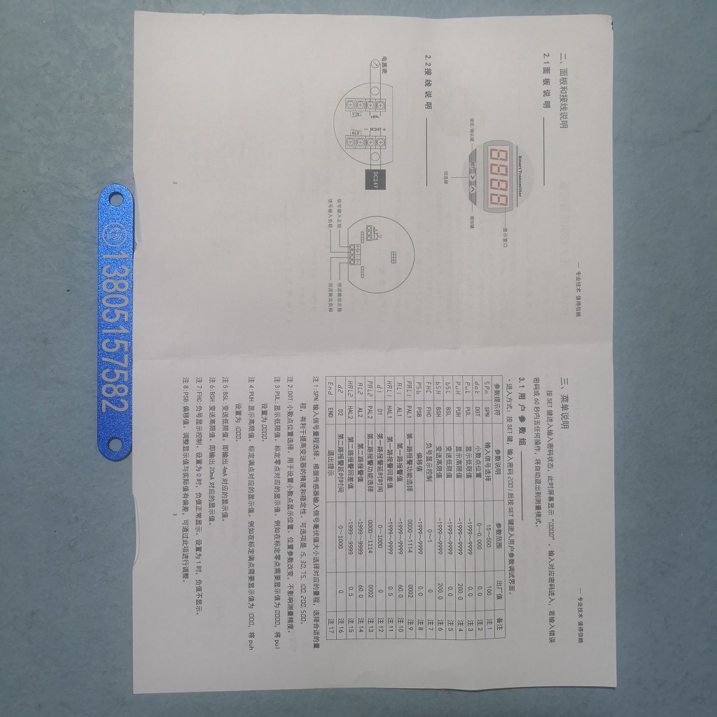 • 数字压力变送控制器是一款集压力测量、显示、接点控制及变送输出于一体的智能化测控产品,具有RS485通讯接口,可通过RS485总线功能实现网络、数字信号传输以及变送器参数远程设定和调校。也可直接安装于现场压力测量点,即可用按键现场设定零点、满度值、接点压力、控制压力等多种参数,对现场压力、差压、液位进行精确测量和控制,并向其他设备提供标准模拟信号或提供接点控制信号的智能化多功能产品。