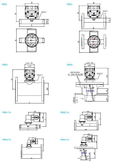 5隔爆型流a开关技术参数: .隔爆型流量开关是带有铝合金隔爆外壳的 FW581-584型流垦开关,其防爆性能符合GB38362的规定。 注:隔爆型流且开关,不可带有1型或7型指示器。 .防爆标志Exd ll BT3/T4 .高供电电压220V AC .大电流0.5A .电气间隙220VAC时,大于6mm .爬电距离220VAC时,大于12mm .高允许表面温度T3:200 'C .引入装置采用压盘式和管连接式,有外接地螺栓及 接地符号。 .隔爆型流量开关的灌封:a封材料为环氧树脂胶及 玻璃纤维物.干爆时间24小时。 .防护等级:IP65 6高温型流量开关: .H2型结构可适用于介质温度低于200r- .H3型结构可适用于介质温度低于30070 .在高温情况下不可以安装FW581-584类型的指示器 及继电器。H2型干簧管安装于不锈钢支架上,H3型 干簧管安装于PTFE支架上.支架直接安在测量客 体壳体上。 .300nun长的连接线由硅胶电缆(H2型)或玻璃纤维 电缆(H3型)组成并配有铸铝接线盒。对于FW581 和FW582, H2类型的密封圈由硅橡胶制成,对于H3 类型都采用焊接结构。  * 注意事项: 隔爆产品在正常或规定故障情况下,以及在允许介质高工作温度下,其产品内外零部件表面不得高于该产品相应温度组别要求的温度。引入装置采用压盘式和管连接式,有外接地螺栓及接地符号,安装时应确保接地正确及接地可靠。 流量表 技术参数