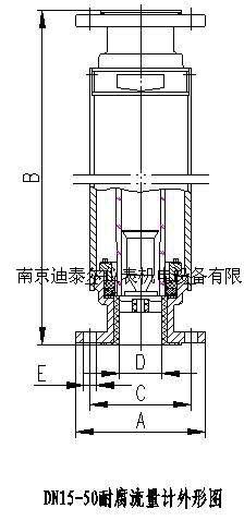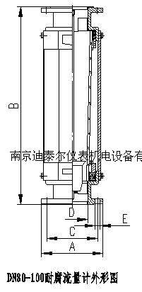 外形及安装连接尺寸 DN4 一 10 耐腐流量计外型为水平安装, DN15 一 50 DN80 一 100 耐腐流量计为垂直上下安装.