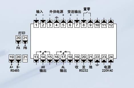 打印功能(限A、B型仪表)(注4) | P | P表示打印接口,不带可省略 |