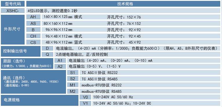 XSH/ | 2路输入,控制输出,双显带光柱(仅限于80×160) |