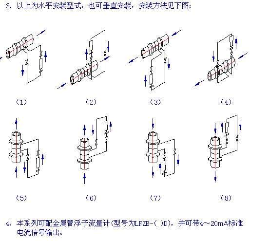 拉杆式流量计具有结构简单,牢固,压力损失小等特点。耐腐型采用不锈钢材料或衬氟塑料,密封件可选氟橡胶或聚四氟乙烯等,对绝大部分常用酸、碱、氧化剂、有机溶剂等有较强的耐腐蚀性。 DN4-10 采用软管连接,亦可根据客户需要设计、制造特殊安装方式。