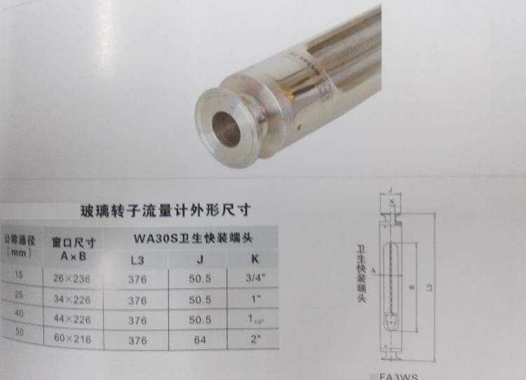 不锈钢玻璃转子流量计,卫生快装端头,卡盘50.5mm 64mm DN15-DN25 DN40 DN50