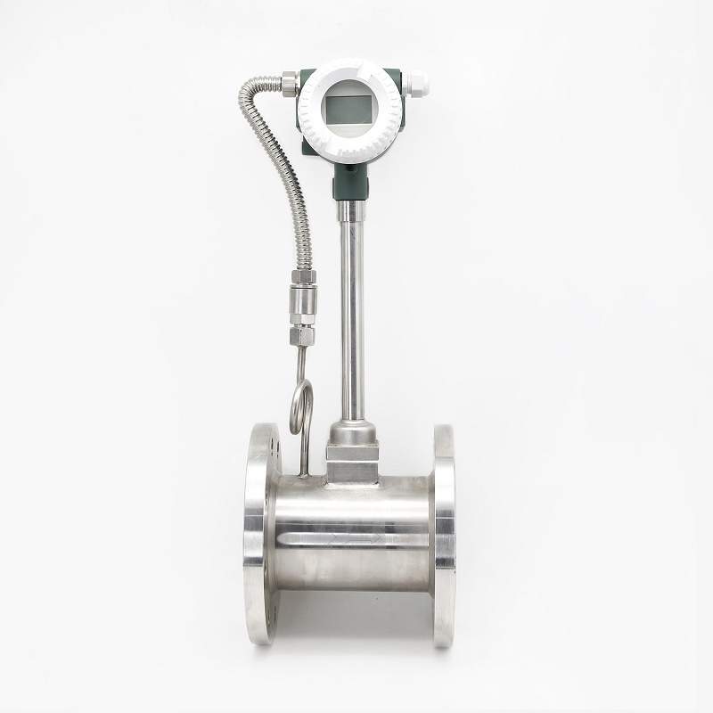 蒸汽涡街流量也可以采用一体化温度压力补偿涡街流量计,一体化型是集成了涡街流量传感器,压力变送器,温度传感器三种传感器于一体,所测量信号经流量计信号处理电路采用单片机技术进行数据处理,测量精度高。可以内置锂电池供电或者24VDC供电。涡街流量计可以测量气体,液体,蒸汽等介质的流量。